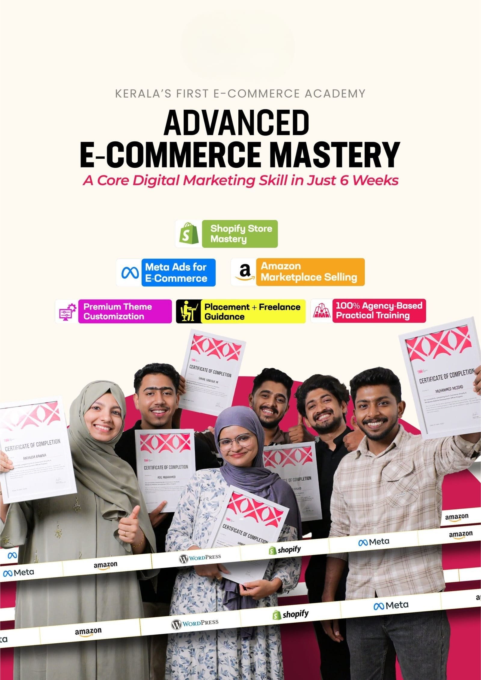 Stay ahead with our constantly updated curriculum that covers the latest e-commerce trends, tools, and technologies. From AI-powered Shopify apps and advanced WordPress development techniques to selling on the Amazon Marketplace and mastering Meta Ads, we equip you with everything you need to thrive in tomorrow’s digital landscape